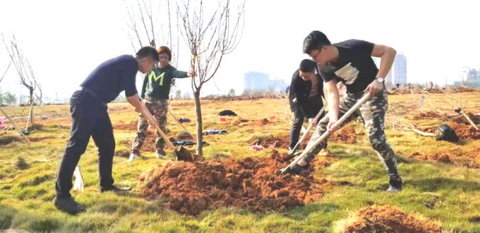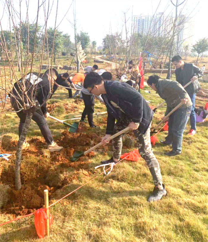 在活動負責人進行任務布置、流程講解后,城投集團團委的青年們便開始了有序的植樹活動。大家分工明確、齊心協(xié)力,揮舞鐵鍬翻新土,扶植新苗列成行,呈現(xiàn)出一派熱火朝天的勞動場面。