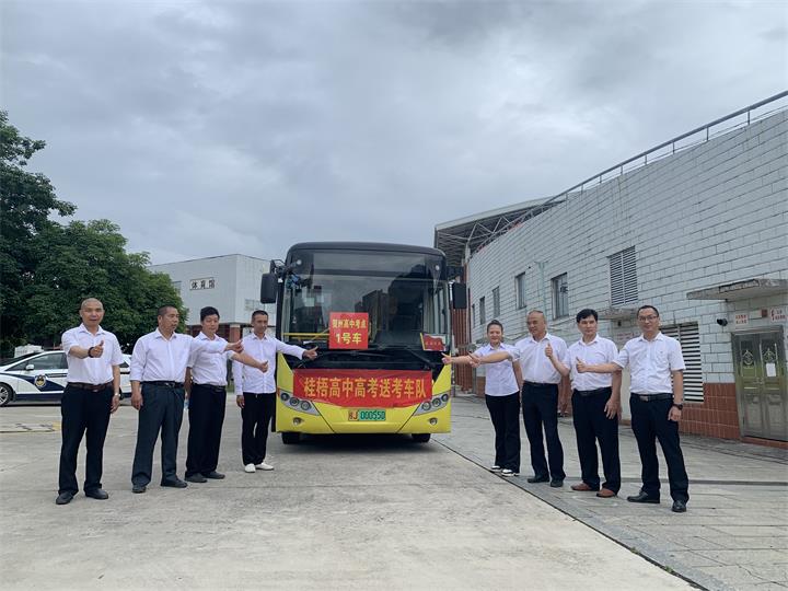 高考期間,公交公司共調(diào)度19臺公交車,作送考專用車,在桂梧高中、賀州市第五高級中學(xué)、賀州外國語學(xué)校等考點(diǎn)接送考生往返,共護(hù)送考生4994人次。送考車輛均統(tǒng)一張貼標(biāo)識,每輛車輛均配備1名秩序維護(hù)員引導(dǎo)車輛安全進(jìn)出、引導(dǎo)考生有序上下車并處理現(xiàn)場應(yīng)急突發(fā)事件,為高考學(xué)子提供了安全、舒適、便捷的送考服務(wù)。