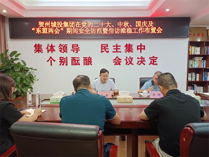 9月9日,賀州城投集團(tuán)召開在黨的二十大中秋國慶節(jié)及東盟兩會(huì)期間安全防范暨信訪維穩(wěn)工作布置會(huì)。集團(tuán)黨...