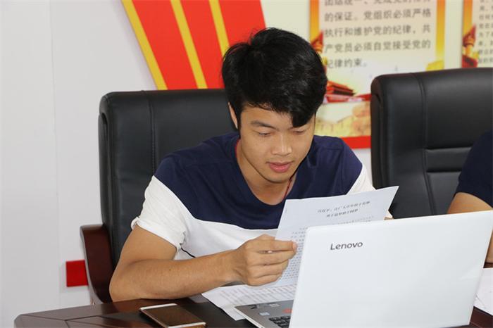 會上,團支部書記鄒帥傳達學習共青團中央以及賀州團市委關(guān)于深入開展學習領(lǐng)會習近平總書記“7.2”重要講話精神切實抓好團的十八大精神學習宣傳貫徹工作有關(guān)文件精神。會議通過觀看PPT、視頻以及團員青年代表朗誦習近平重要思想方針理論,深入學習團的十八大精神。幾位團員青年們代表們分段朗誦了習近平總書記在“7.2”上的重要講話精神,展現(xiàn)了實業(yè)公司團員青年們的激情與風采。