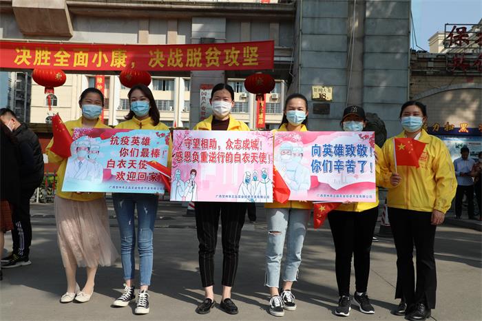 發(fā)布時(shí)間:2020-04-15 作者:文字/何莎莎 視頻/陸陽楊 圖片/義潔 來源:本站原創(chuàng) 審核:湯彩燕4月15日下午,賀州支援湖北醫(yī)療隊(duì)33名隊(duì)員圓滿完成工作任務(wù)凱旋而歸。賀州正贏實(shí)業(yè)公司黨支部組織全體黨員干部職工一行到賀州大道迎接英雄歸來,開展“致敬英雄,擔(dān)當(dāng)作為”主題黨日活動。