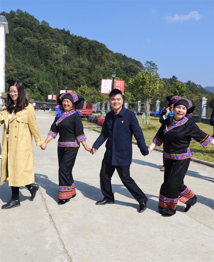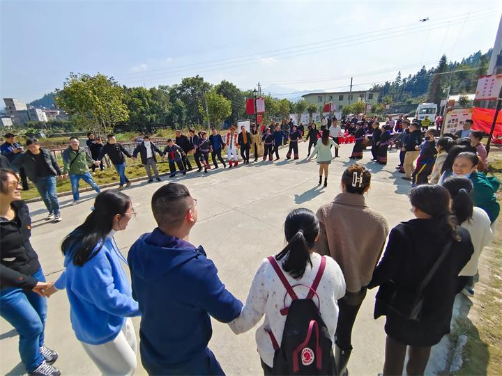 手牽手、心連心,民族團結(jié)齊奮進。在活動中,南鄉(xiāng)壯族山歌隊為大家演唱了古樸的壯族特色歌曲《歡迎朋友到壯鄉(xiāng)來》和《南鄉(xiāng)歡迎您》,讓大家充分感受到壯鄉(xiāng)人民獨特的文化魅力與熱情純樸的民俗風情。隨后,全體黨員與鄉(xiāng)民一同開展紅色歌曲大家唱活動,攜手齊唱《唱支山歌給黨聽》,共同跳起《愛我中華》民族團結(jié)手勢舞蹈,并體驗了壯族特色的投擲繡球等民俗文化活動,讓大家感受到了各民族相聚在一起,共敘民族團結(jié)之情的良好氛圍。
