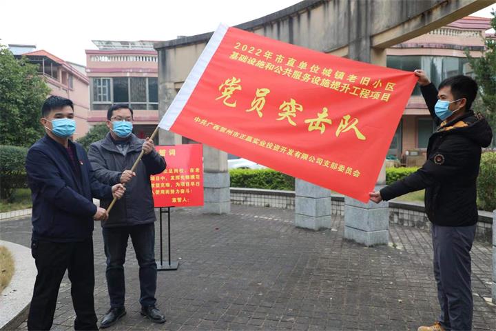 隨后,活動(dòng)人員來到了賀州市檢察院生活小區(qū),該小區(qū)是正贏實(shí)業(yè)公司負(fù)責(zé)實(shí)施的賀州市2022年市直單位城鎮(zhèn)老舊小區(qū)基礎(chǔ)設(shè)施和公共服務(wù)設(shè)施提升工程項(xiàng)目其中一個(gè)老舊小區(qū)。在老舊小區(qū)現(xiàn)場(chǎng),支部開展了黨員對(duì)標(biāo)承諾活動(dòng),并成立了2022年市直單位老舊小區(qū)基礎(chǔ)設(shè)施和公共服務(wù)設(shè)施提升工程項(xiàng)目“黨員突擊隊(duì)”。柳國忠強(qiáng)調(diào),全體黨員要通過向身邊的優(yōu)秀黨員學(xué)習(xí)并從中確立標(biāo)桿和榜樣,在項(xiàng)目建設(shè)中以黨員的標(biāo)準(zhǔn)嚴(yán)格要求自己,帶頭攻堅(jiān)克難,沖鋒在項(xiàng)目一線,更好的為人民群眾服務(wù)。