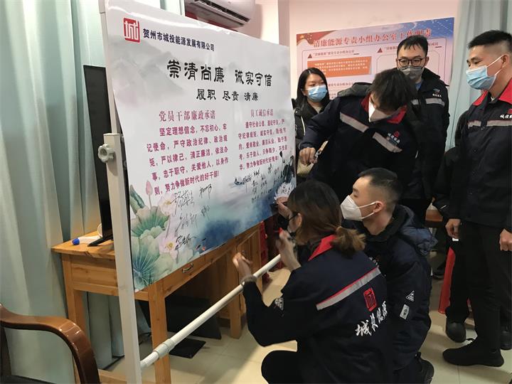 活動(dòng)最后全體干部職工集體在《崇清尚廉 誠實(shí)守信》廉潔承諾展板上簽名。