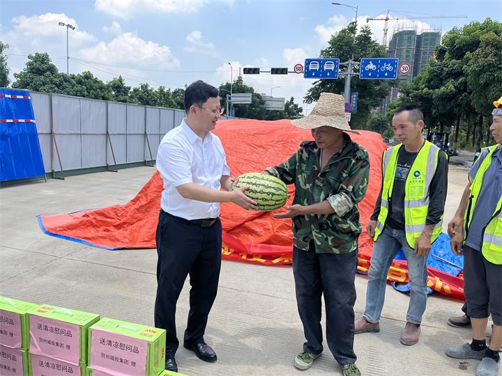 夏季灼日炎炎,為切實維護高溫期間廣大一線工作者身體健康,7月27日,城投集團黨委副書記、總經(jīng)理常瑜到城東片區(qū)城市品質(zhì)提升改造工程(一期)工地現(xiàn)場開展送清涼慰問活動,向奮戰(zhàn)在一線的勞動者致以崇高敬意,表達親切慰問,送去消暑慰問品。