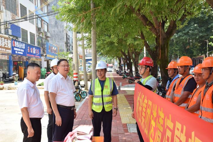 連日來,賀州市頻繁發(fā)布高溫預(yù)警,熱浪襲人。7月27日,為傳達城投集團黨委的關(guān)心關(guān)愛,集團黨委書記、董事長黃俊到賀州市城市品質(zhì)提升改造項目(城區(qū)道路白改黑)開展送清涼慰問活動,為高溫下堅守一線的勞動者送上西瓜、涼茶等防暑降溫慰問品。