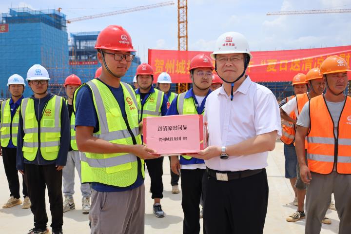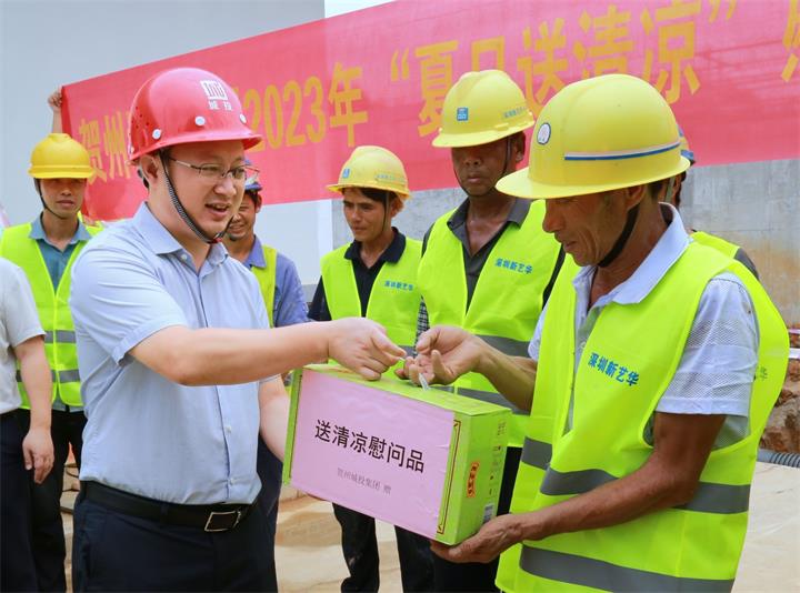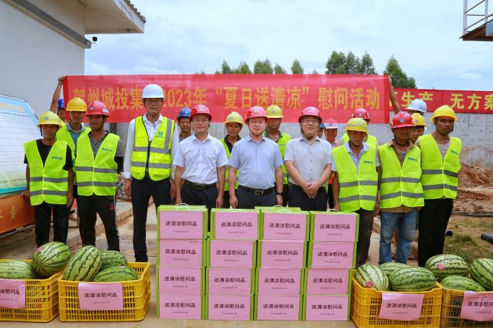 為持續(xù)做好夏季防暑降溫工作,關心關愛在高溫天氣中堅守崗位、辛勤勞動的施工人員,近日,城投集團黨委書記、董事長黃俊,集團黨委副書記、總經(jīng)理常瑜分別到賀州第三高級中學項目、賀州市平桂區(qū)域污水處理設施建設項目開展2023年“夏日送清涼”慰問活動。