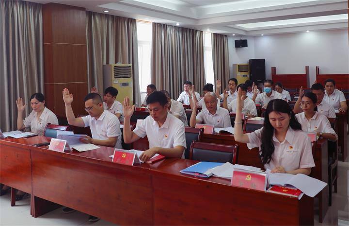 會議在激昂的國歌中拉開序幕,全體黨員莊重肅立,齊唱《中華人民共和國國歌》。