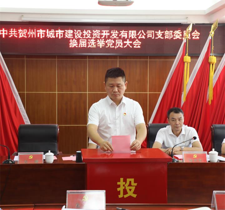近日,賀州城投公司黨支部換屆選舉大會順利召開,公司黨支部書記、董事長蘭乾雄主持會議。支委班子、全體黨員參加會議。