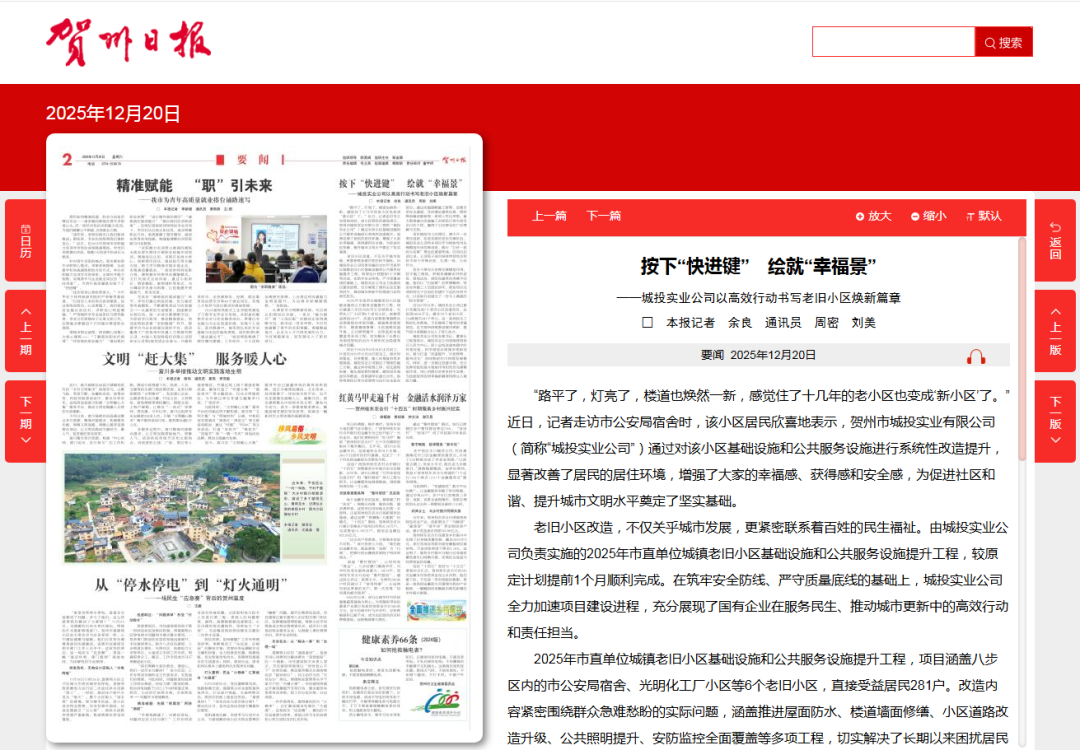 按下“快進鍵” 繪就“幸福景”——城投實業(yè)公司以高效行動書寫老舊小區(qū)煥新篇章2025-12-22