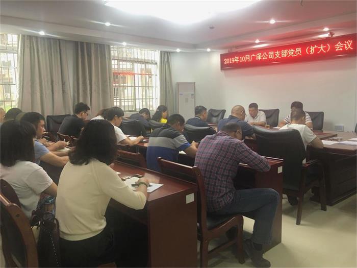 10月8日,廣澤公司支部召開黨員大會,集中學習習近平總書記在中華人民共和國成立70周年大會上重要講話精...