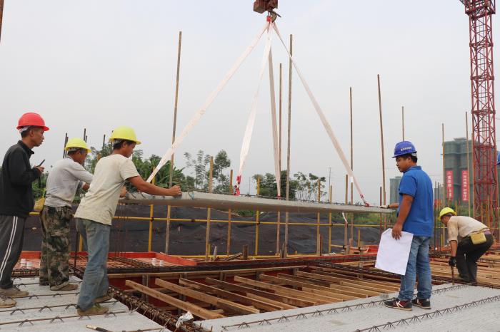 賀州市八步區(qū)城東實驗小學項目首塊預制樓板吊裝成功2018-10-12